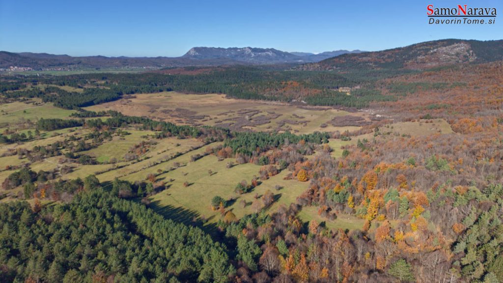 Palško jezero – presihajoče in trenutno še brez vode. V ozadju Nanos.