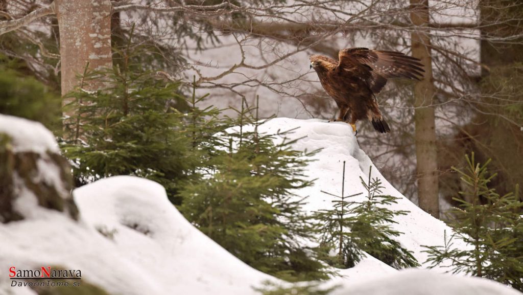 Planinski orel – pozimi, ko so gorski vrhovi zasneženi, pride tudi v gozdove na pobočjih.