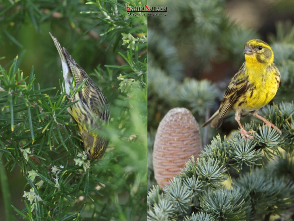 Grilček – levo samica, ki se hrani na rožmarinu, desno samec na cedri